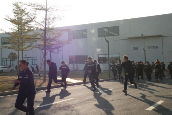 火災警報鈴聲響起,全體人員按照指定的疏散線路,有序地進行緊急疏散,并第一時間撤離到安全地帶——公司大門口前的空地。經過兩次疏散演練,辛格林家人最終以222秒的成績完成疏散、列隊并清點人數,大家紛紛為自己的進步鼓掌點贊!